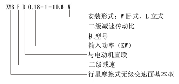 二級(jí)齒輪配無級(jí)變速機(jī)型號(hào)表示方法