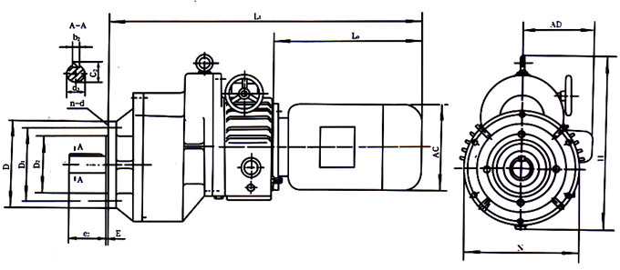 | 機(jī)型號(hào) | 安裝尺寸 | 輸出軸伸端聯(lián)接尺寸 | 外形尺寸 | ||||||||||||||||