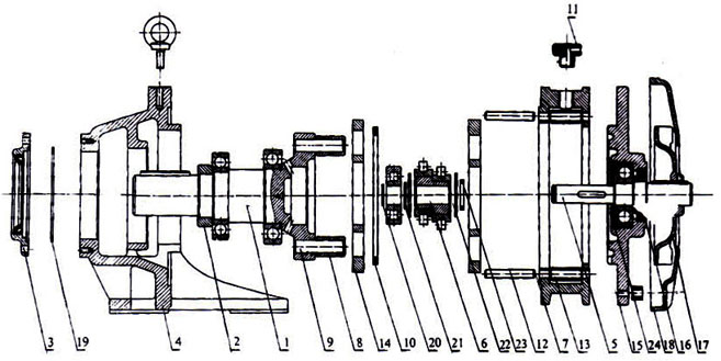 潤(rùn)滑脂推薦用天津漢沽化學(xué)廠生產(chǎn)的減速機(jī)潤(rùn)滑脂(00號(hào)減速機(jī)脂). (三)維修(拆卸與裝配) |